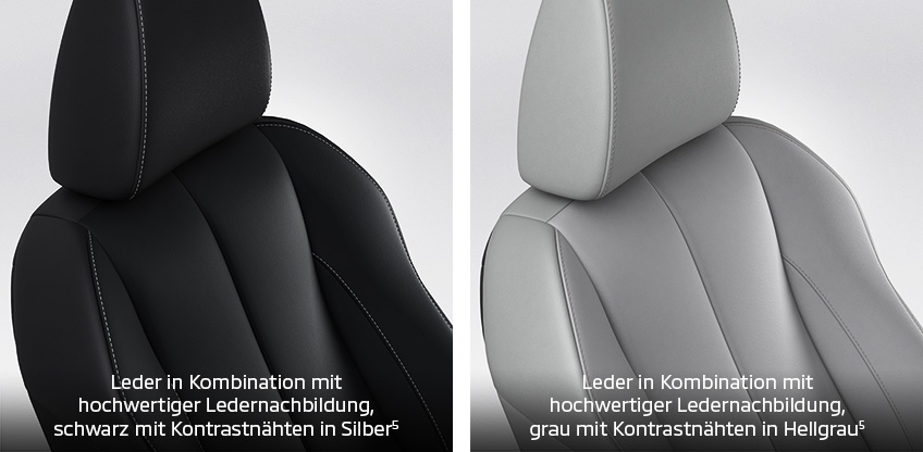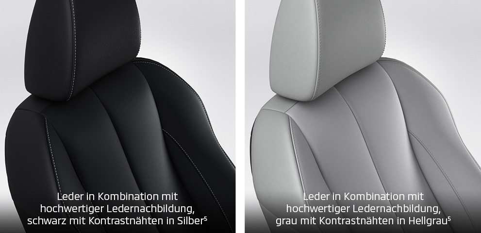 Ob strapazierfähiger Stoff, hochwertig verarbeitete Mikrofaser-Kunstleder-Kombination11 oder luxuriöses Leder5: Die Sitze sind sehr bequem, geben exzellenten Seitenhalt und bieten auch auf längeren Strecken einen vorbildlichen Komfort.