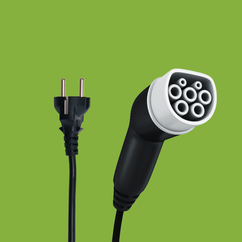 Zum Laden mit Wechselstrom (AC): ein Einphasen-Stecker mit einer Ladeleistung bis zu 4,6 kW (230 V, 32 A).