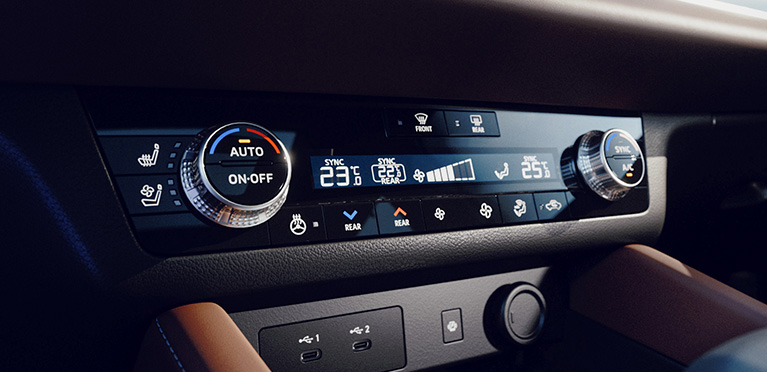 Die 3-Zonen-Klimaautomatik5 sorgt für maximalen Komfort, indem sie eine unabhängige Temperaturregelung für drei verschiedene Bereiche ermöglicht: den Fahrerbereich, den Beifahrerbereich und den Rücksitzbereich.