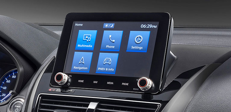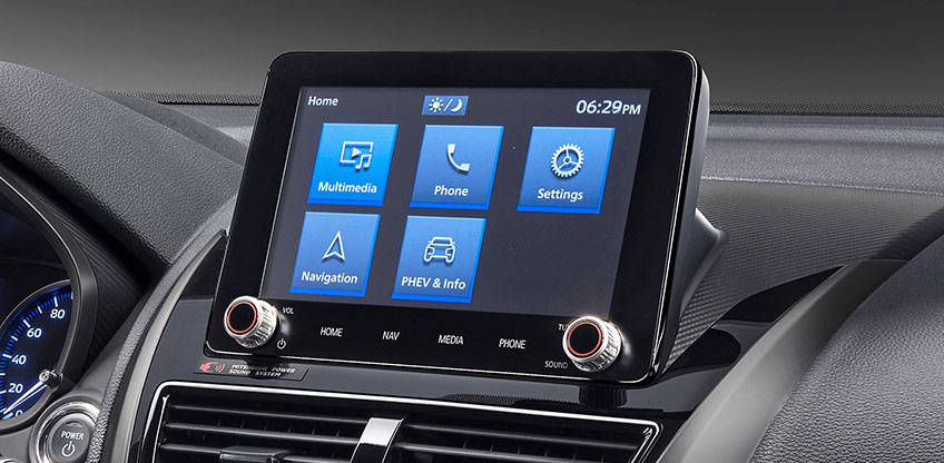 Das Infotainment-System „Smartphone Link Display Audio II“ verbindet Ihr Mobiltelefon mit dem Fahrzeug und lässt sich ganz einfach via Sprachsteuerung bzw. über das hochauflösende 8″ Farbdisplay bedienen. Die Benutzeroberfläche ist für die einfache Bedienung während der Fahrt optimiert. Auch smart: Mit der Mitsubishi Remote System App steuern Sie viele Funktionen des Infotainment-Systems, z. B. die Klimatisierung.