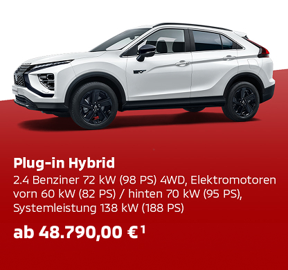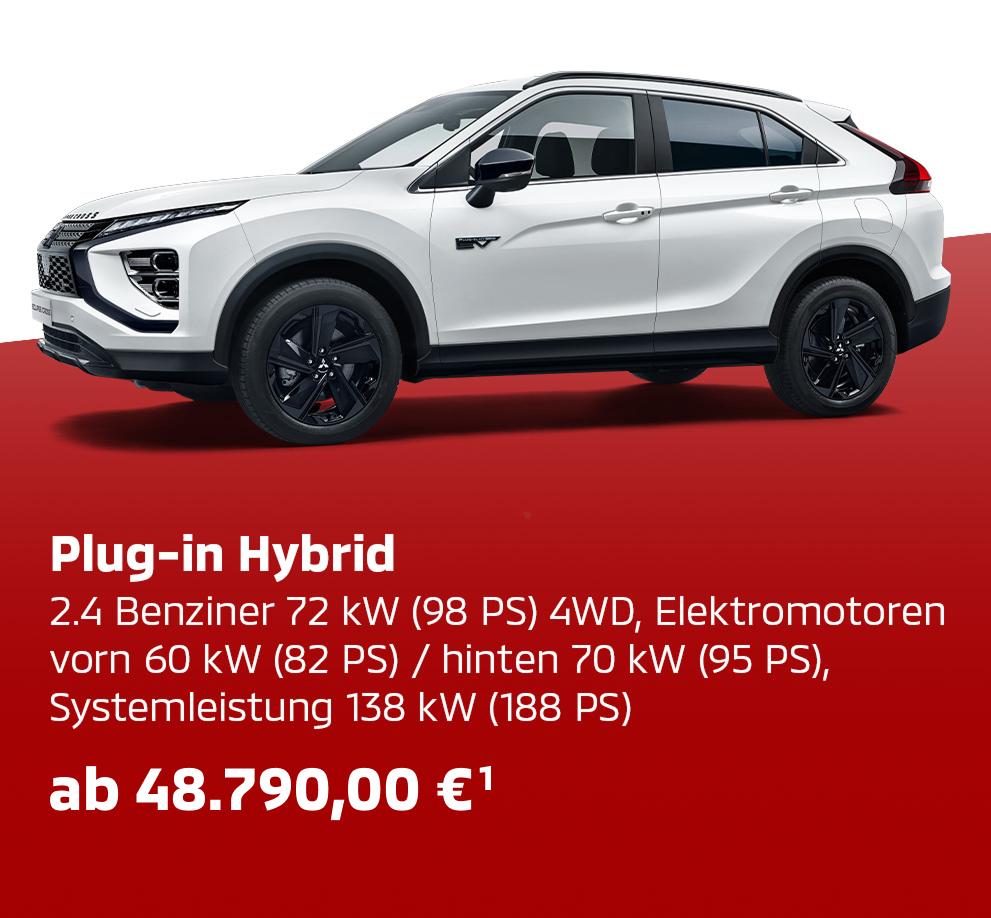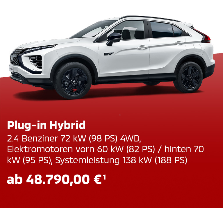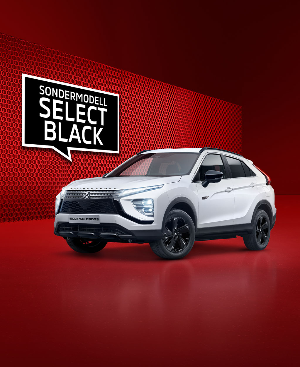 Bei Stil und Komfort ist der Eclipse Cross Plug-in Hybrid Select Black eine Extraklasse für sich – mit allen Ausstattungs-Highlights des Sondermodells Select. Dazu zählen u. a. 230-V-Steckdose im Gepäckraum, 360-Grad-Umgebungskameras, adaptive Tempoautomatik, Ausparkassistent, beheizbares Lenkrad, Sitzheizung hinten (äußere Sitzplätze), Mitsubishi Power-Sound-System, Seitenschweller in Wagenfarbe, Stoßfänger-Unterseiten in Wagenfarbe/Schwarz glänzend sowie Totwinkelassistent. Als Sondermodell Select Black hat er noch mehr glänzende Argumente – z. B. seine Metallic- und Perleffektlackierung, die bereits im Preis inbegriffen ist.