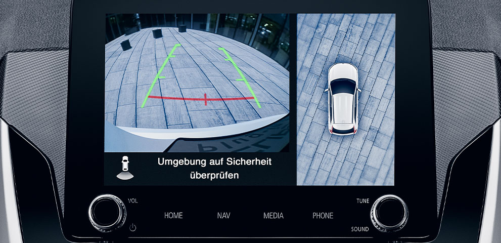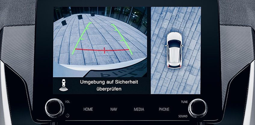 Der Eclipse Cross Plug-in Hybrid Select Black ist mit vielen modernen Fahrassistenzsystemen ausgestattet. So warnt z. B. der Totwinkelassistent optisch und akustisch vor Hindernissen im überwachten Bereich außerhalb der Spiegel. Daneben geben 360-Grad-Umgebungskameras beste Übersicht – sogar aus der Vogelperspektive.