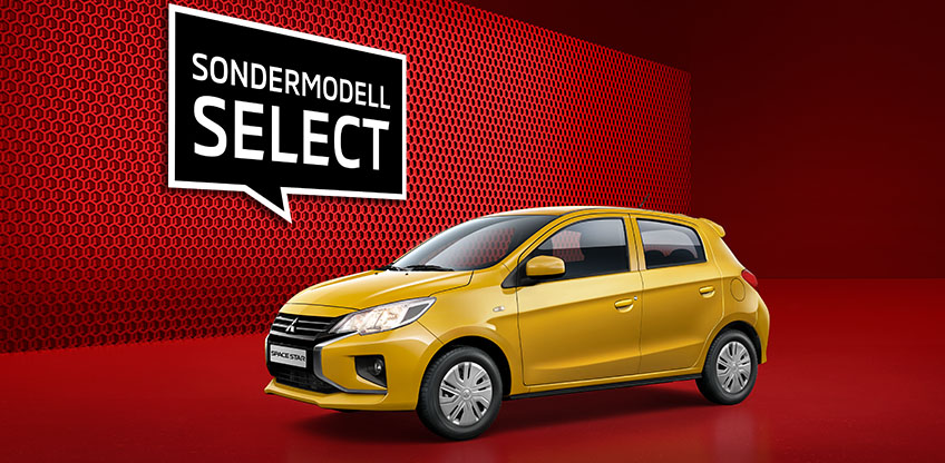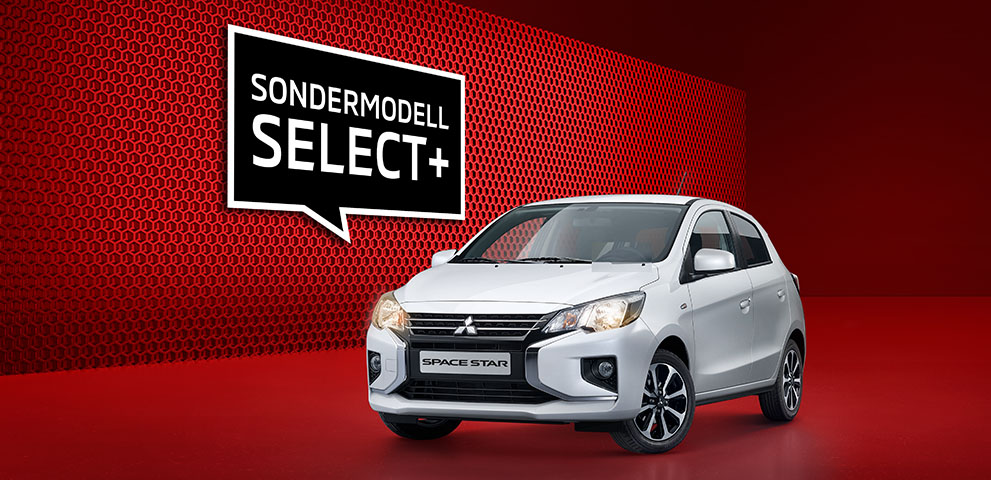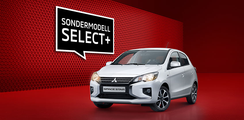 Hier kommt noch mehr Style, Komfort und Sicherheit. Der Space Star als Sondermodell Select+ begeistert u. a. mit 15" Leichtmetallfelgen, Multifunktionslenkrad und Rückfahrkamera.