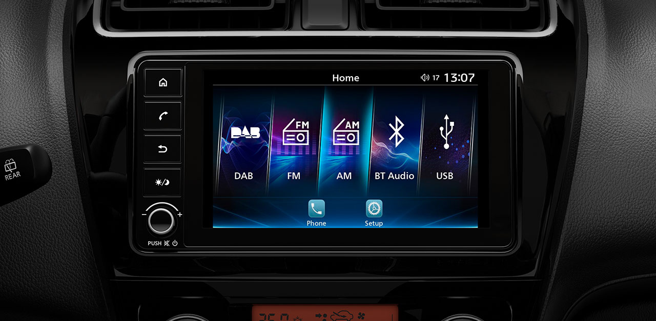 Willkommen zu unserem Unterhaltungsprogramm: Ob telefonieren, Smartphone-Apps steuern, Nachrichten diktieren und vorlesen lassen, navigieren oder Musik streamen – mit dem Infotainment-System5 im Space Star läuft das alles einfach und sicher per Sprachsteuerung und über den hochauflösenden 7" Touchscreen5