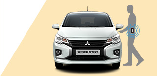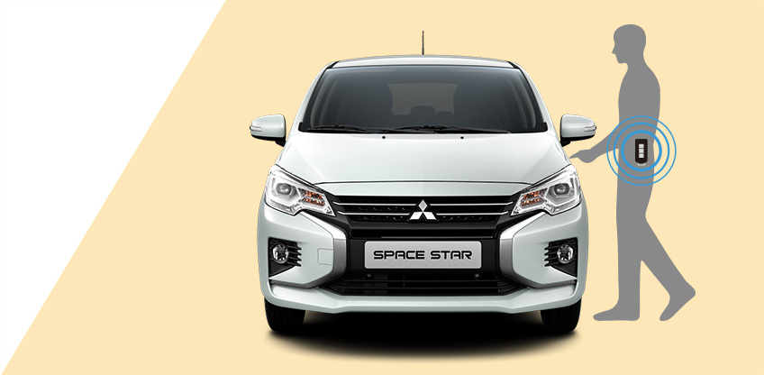 Sobald Sie in Reichweite Ihres Space Star sind, lassen sich Fahrertür und Heckklappe öffnen, ohne dass Sie den Schlüssel aus der Tasche holen müssen. Ist der Schlüssel im Wageninneren, starten Sie den Motor einfach per Knopfdruck.